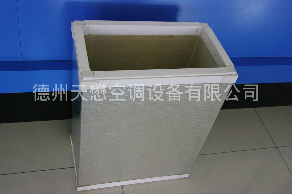 天懋玻纖復合風管是用多孔性超細玻璃面板制作,導熱系數小,外表為鋁箔,其熱反射力強,據測試可使風管的傳導系數下降25%左右,鋁箔又是極好的防潮防濕材料,可確保玻纖板的干燥性,(據測試,保溫材料吸濕率每增加1%,熱損失提高15%),因此玻纖復合風管具有優異的保溫性能。