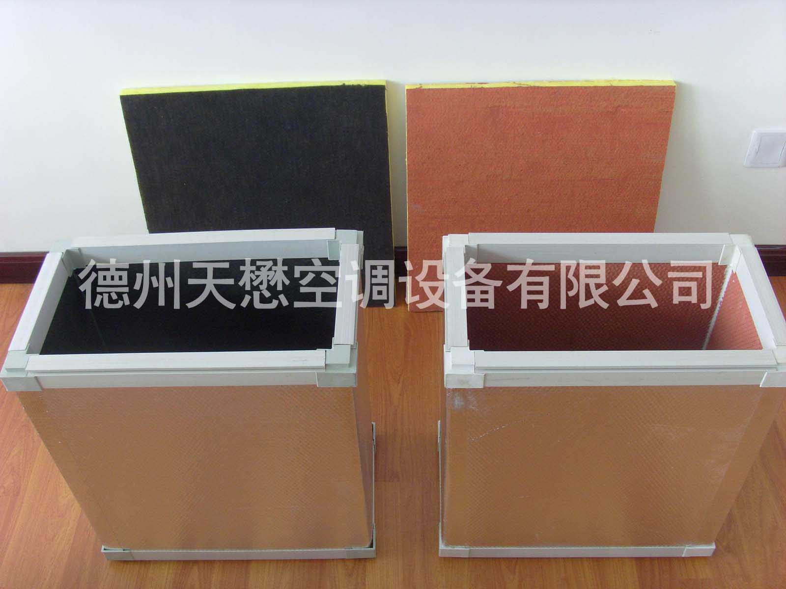 玻璃棉板是采用離心法成形的玻璃纖維加樹脂膠經熱壓、固化而成,板材屬于不燃材料,所以具有良好的防火性能(不燃A級),板材密度大于等于80kg,厚度一般為25mm。板材根據表面復合材料的不同,分為雙面鋁箔型、消聲吸音型、抑菌防霉型等不同種類,各種不同種類的板材根據其自身具有的特點和功能,適用于不同的場合。 玻纖風管是將玻纖復合板經刀具切割、專用膠帶粘合、密封、加固而成的成型風管。玻纖風管具有保溫、消聲、防火、防潮、重量輕,漏風量小、造價低、施工周期短、占用空間小、外形美觀、使用壽命長、性價比較合理等優點,廣泛使用在中低壓空調通風系統中。